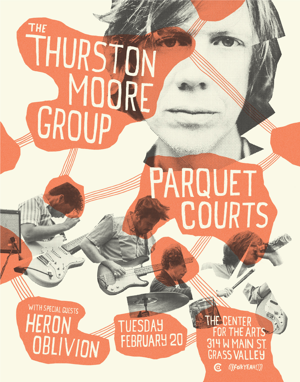 Risograph series for Thurston Moore and Parquet Courts concert. Press photos for both bands on the poster were converted to halftone cutouts to make them feel more graphic.